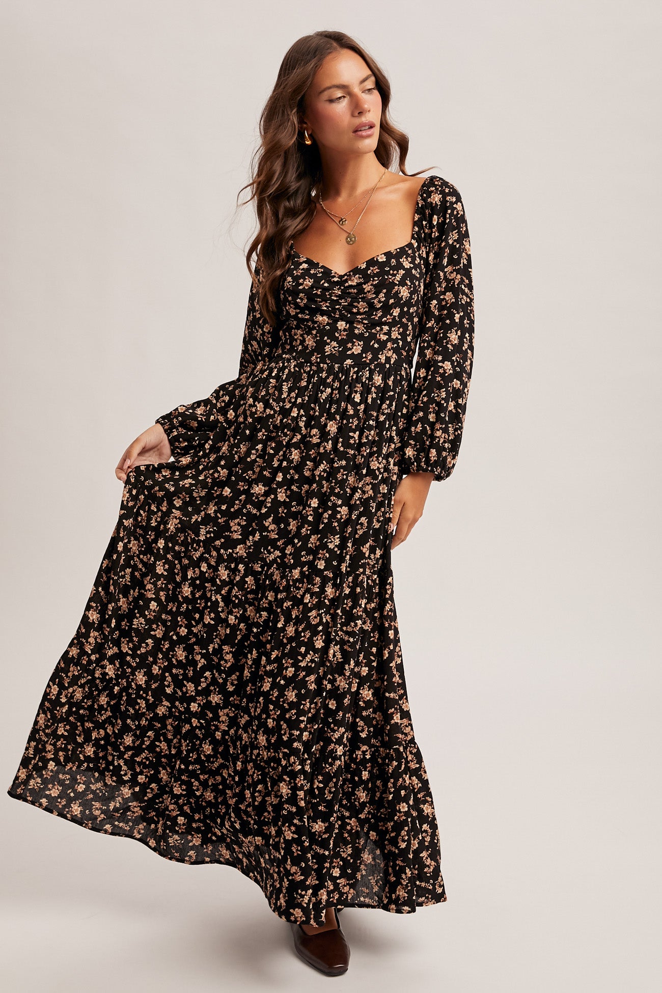 Black Floral Midi Dress