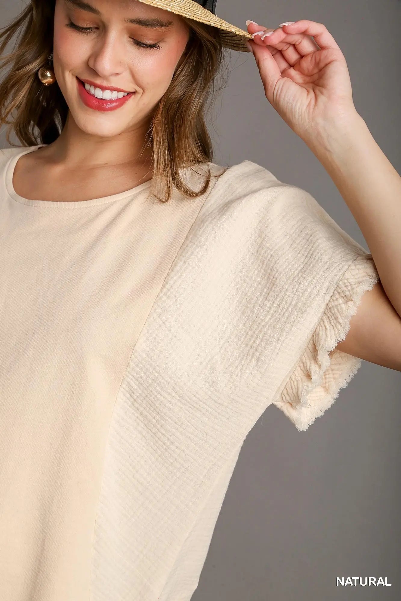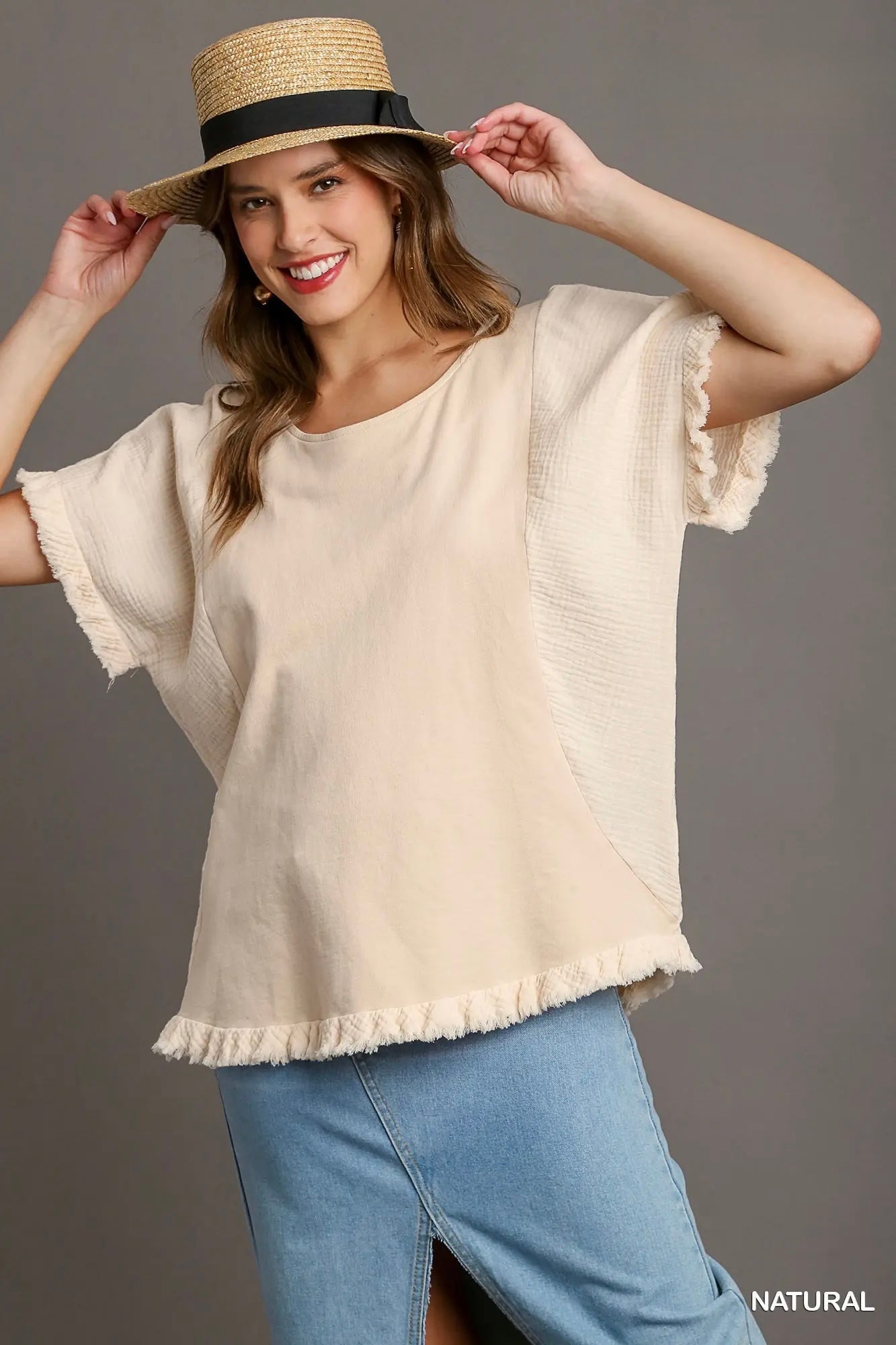 Fray Trim Ruffle Top - Oatmeal
