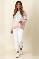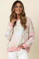 Soft, cozy, and full of charm. This floral patchwork pullover features a relaxed oversized fit with a classic crew neckline and subtle triangle detail for a laid-back, lived-in feel. The mix of floral and color block prints gives it that perfectly unique, boutique look you’ll love wearing all season long.
