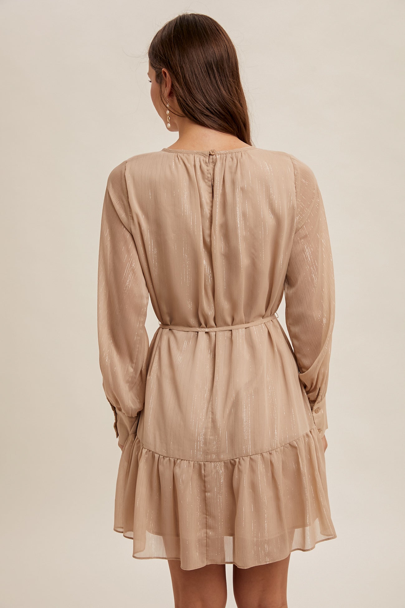 Champagne Pleated Ruffle Mini Dress