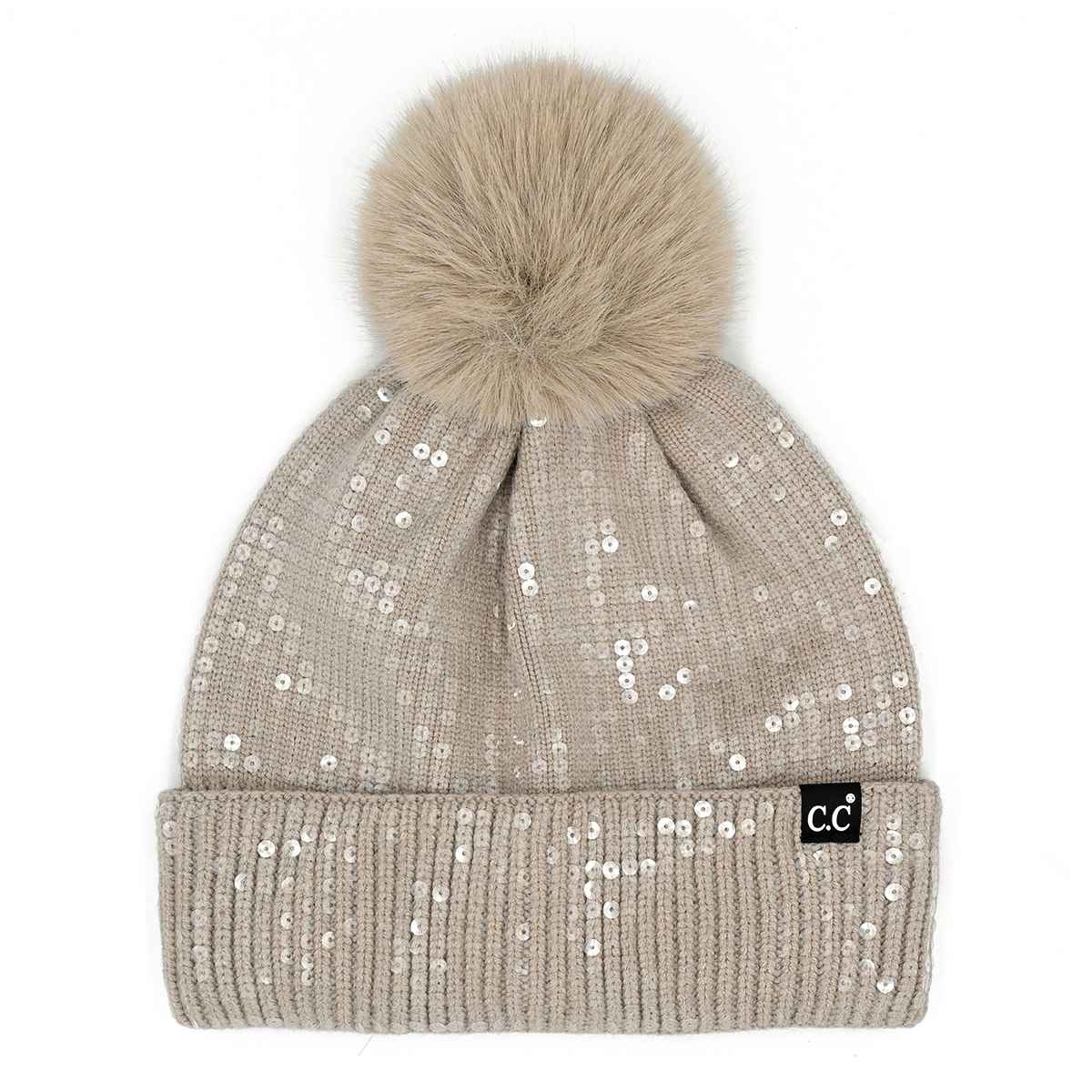 Add a little sparkle to your cold-weather look with the All Over Sequin Pom Beanie. Designed with shimmering sequins throughout and topped with a soft, fluffy pom, this beanie blends cozy comfort with glam style. Finished with the signature C.C. label, it’s perfect for everyday wear, winter outings, or gifting.