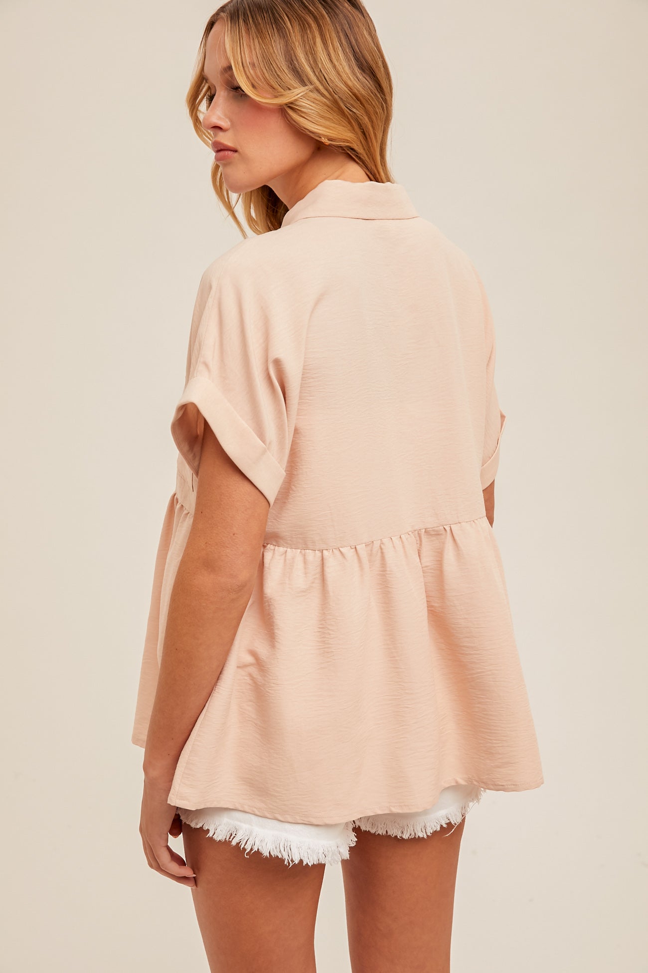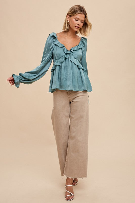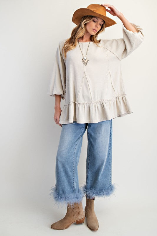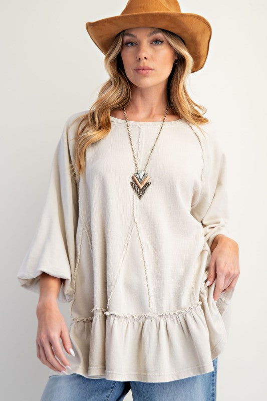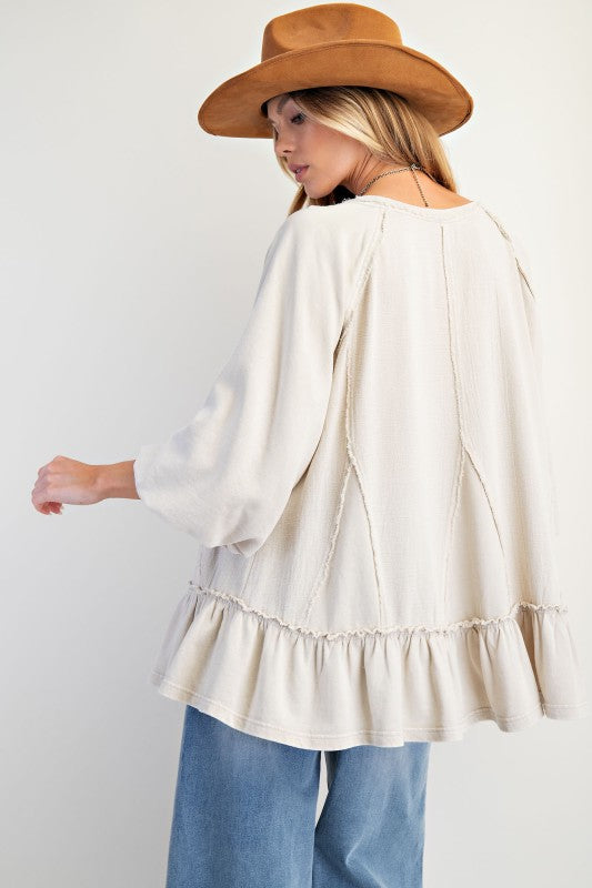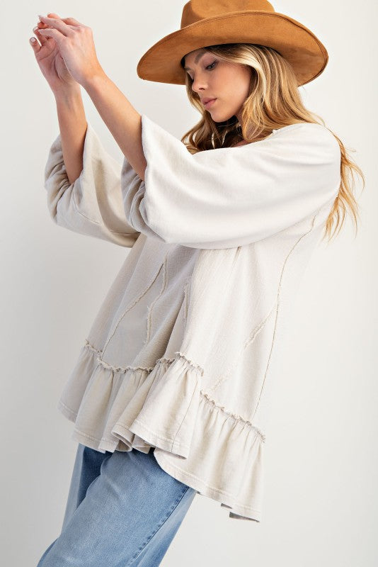 Mineral Washed Ruffle Hem Top | Cappuccino
