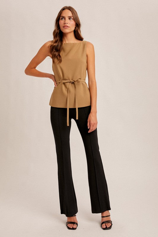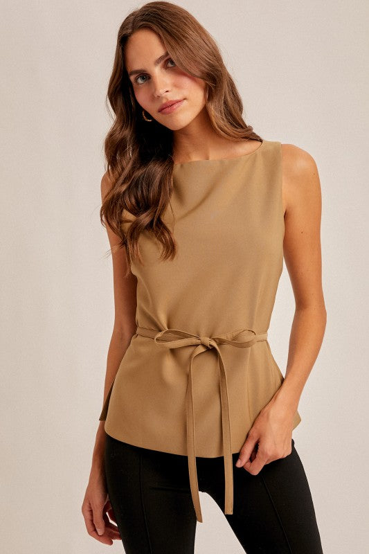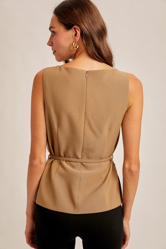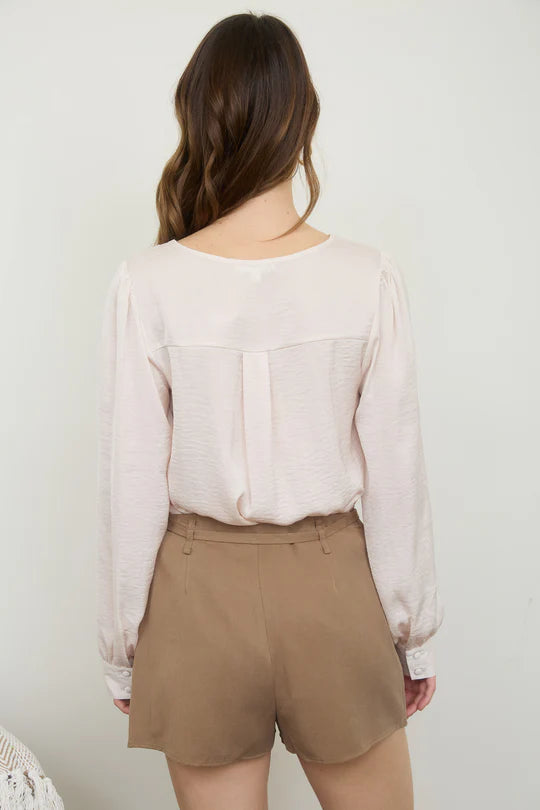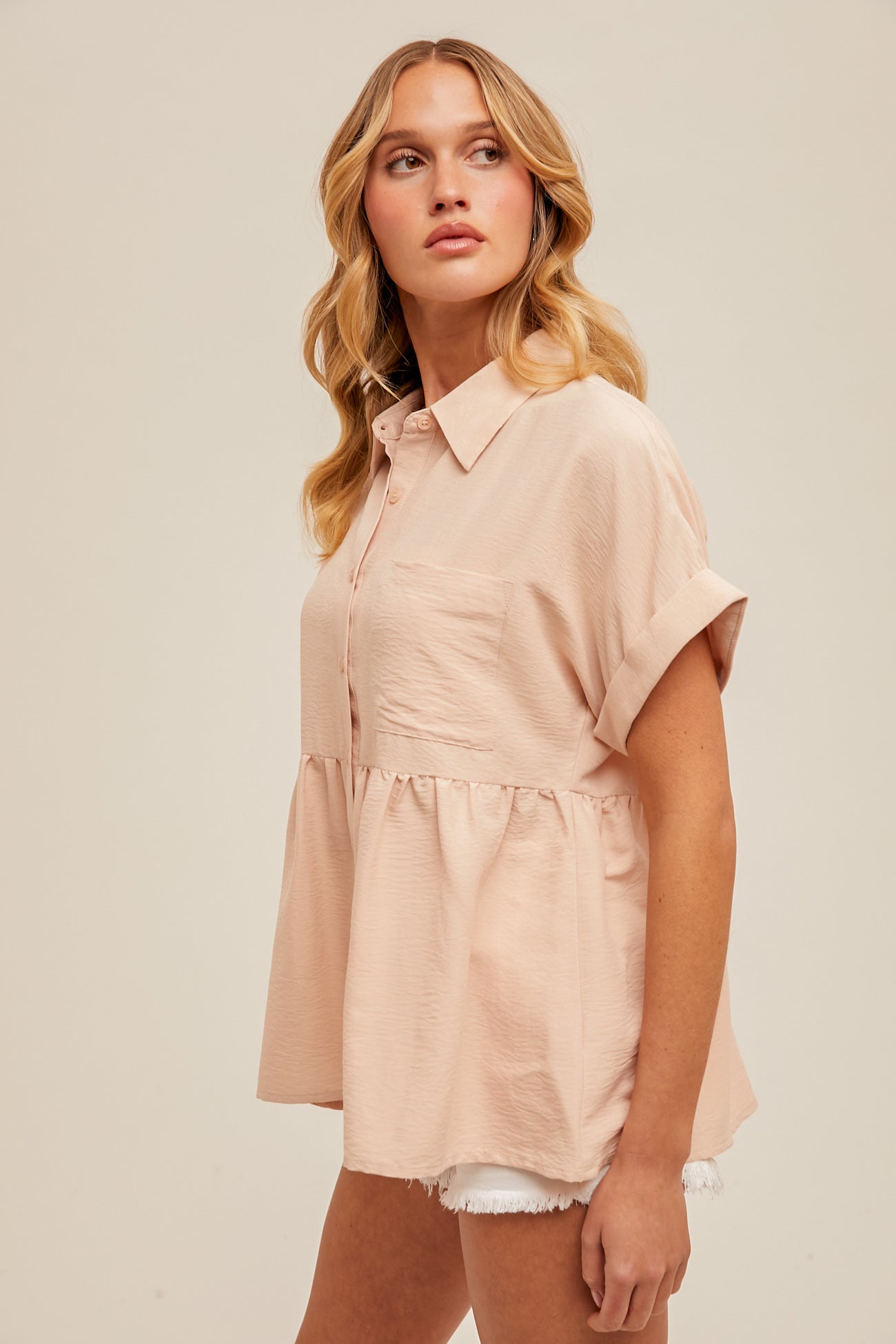 Mineral Washed Ruffle Hem Top | Cappuccino