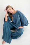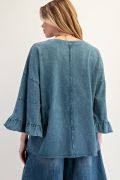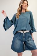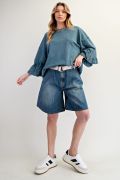 Relaxed, bold, and ready to elevate your everyday look. This washed teal top features a soft denim-inspired fabric with oversized balloon sleeves and a flattering loose fit. Pair it with your favorite denim or white shorts for a fresh, on-trend vibe.