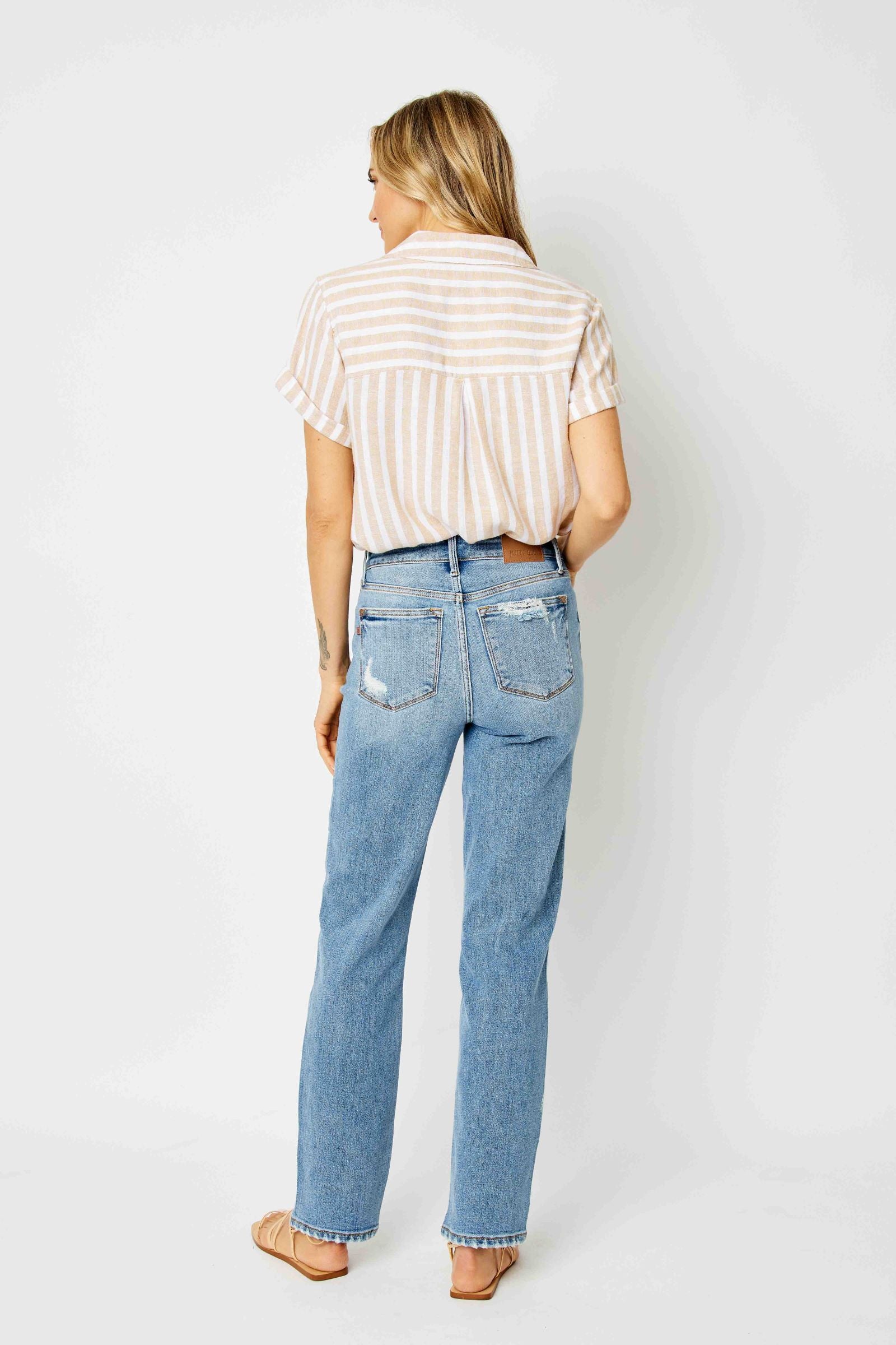Judy Blue High Waist Bootcut Jeans with Fray Hem