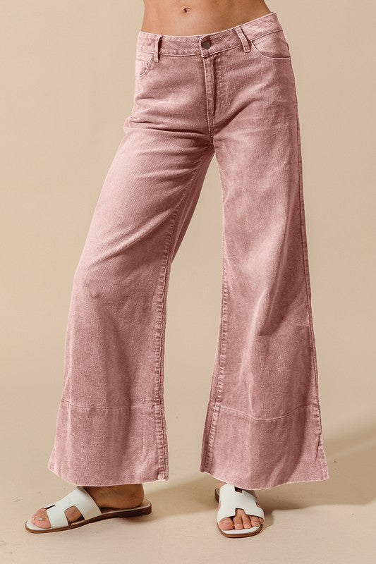 Wide Leg Flared Washed Corduroy Pants – Pink