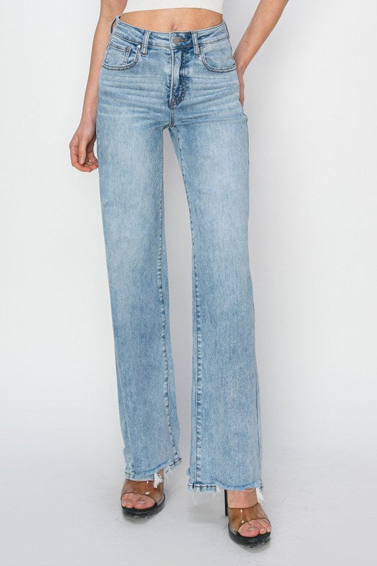 Risen High Rise Light Wash Wide Leg Jeans