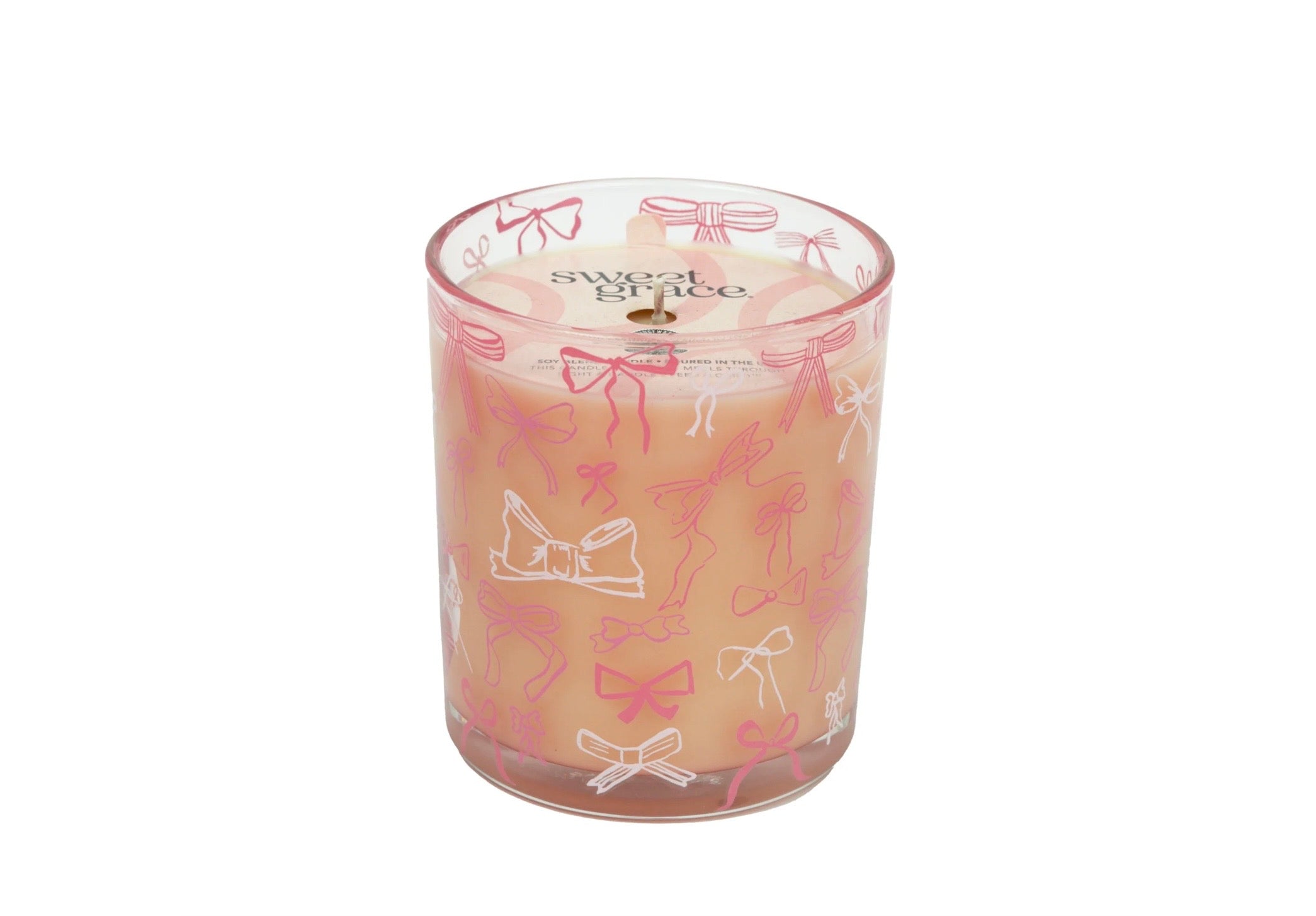 Add a touch of sweetness with the Sweet Grace Bow Candle! This adorable candle features pink and white bow decals on a clear glass jar, creating the perfect playful, pink-girl aesthetic. Filled with a soy-blend wax and our best-selling Sweet Grace fragrance, it offers up to 72 hours of burn time. Light it up and let the fun, flirty spirit of Sweet Grace fill your space!