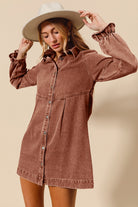 Elevate your everyday look with this Washed Denim Button Down Mini Dress. Designed with a soft washed finish and a flattering mini length, this dress blends casual comfort with chic style. The button-down front adds a timeless touch, making it easy to dress up with heels or keep casual with sneakers.