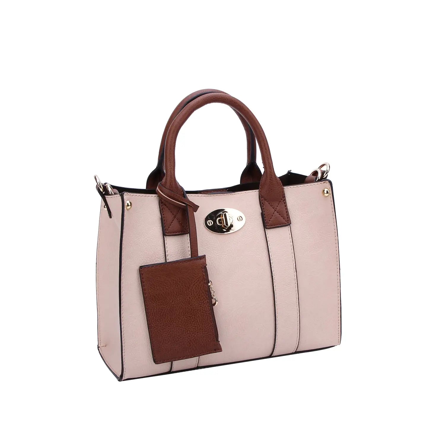 Upgrade your handbag collection with this versatile 3-in-1 satchel crossbody bag. Designed with a structured boxy shape, it offers both polished style and practical function. Carry it by the top handles for a classic look, wear it crossbody for hands-free convenience, or use the matching pouch for quick grab-and-go moments. The nude and brown contrast design makes it a timeless piece you’ll reach for again and again.