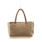 Classic French market style meets rustic charm with the Myra Sel De Mer Small Bag. Made from sturdy upcycled canvas with gently frayed edges, this bag offers a timeless, vintage-inspired look. The bold “Sel de Mer” typography gives it that authentic European market-tote feel, while the rich leather handles add durability and warmth.