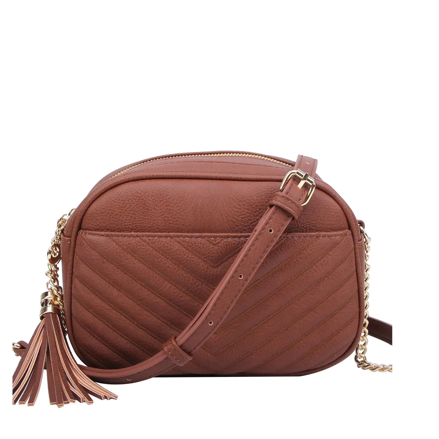 Chic and versatile, the V-Stitch Tassel Crossbody Bag is the perfect blend of style and function. Designed with quilted V-stitch detailing, a playful tassel accent, and gold hardware, this bag is a polished everyday choice. The secure zip closure and adjustable strap make it practical while keeping your look elevated. Available in Tan and Coffee.