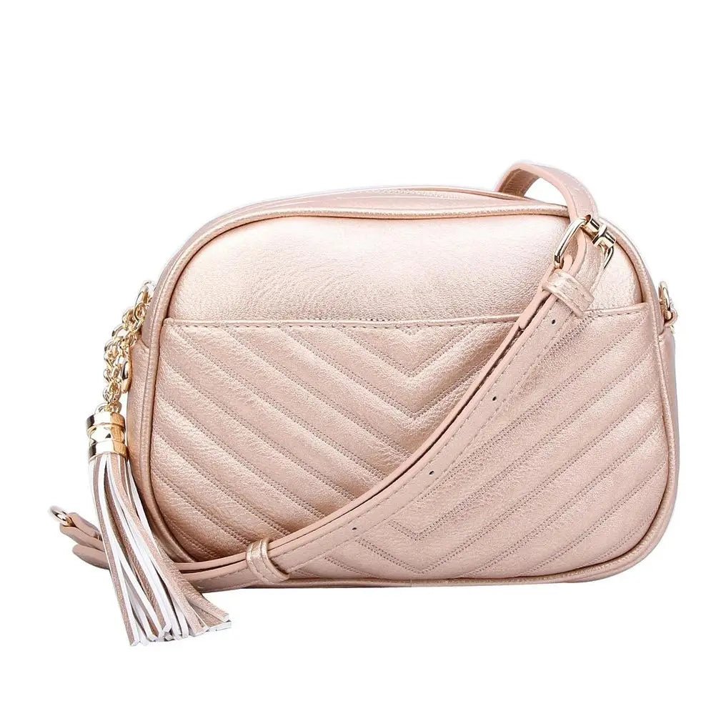 V-Stitch Tassel Crossbody Bag | Rose Gold