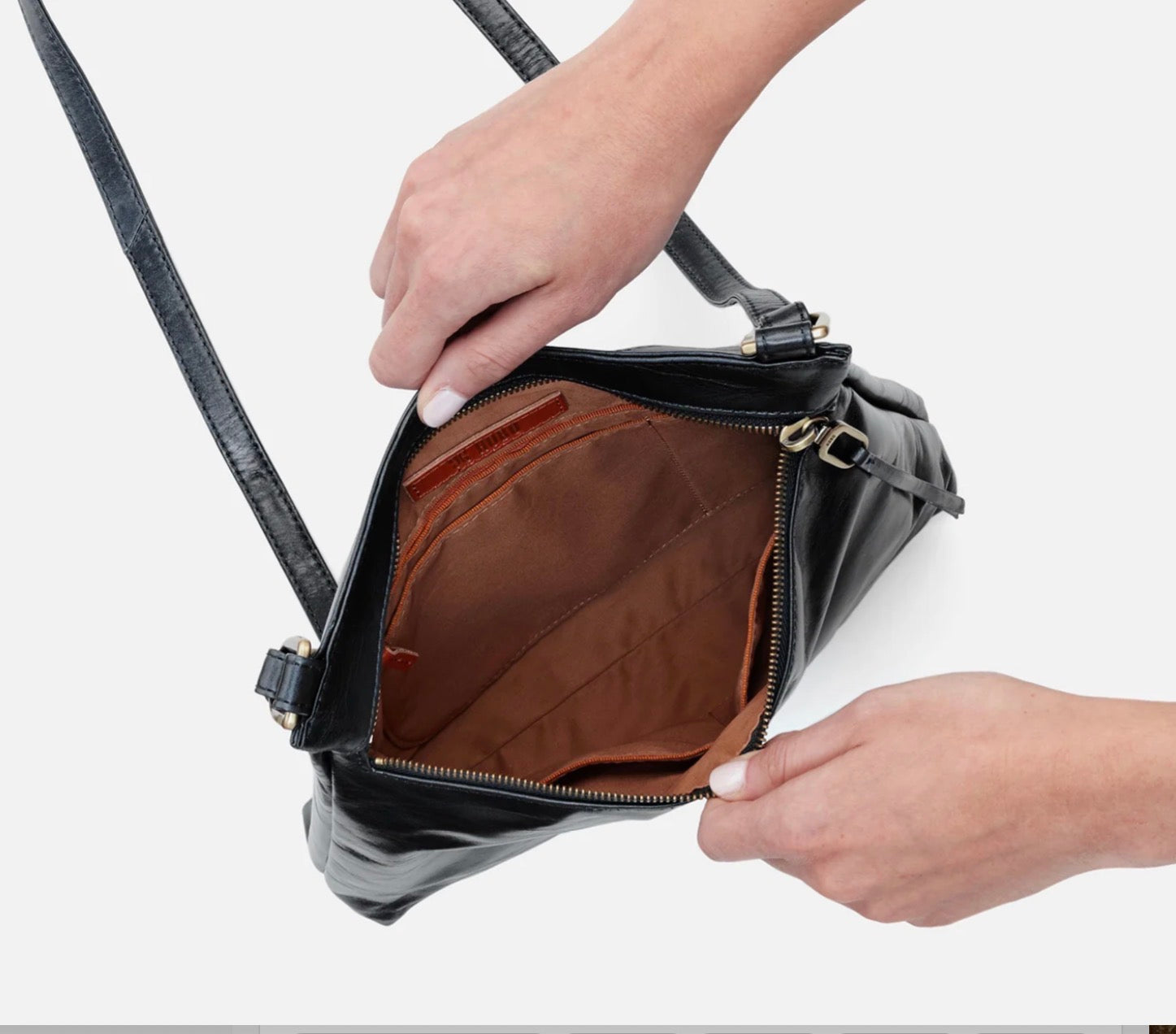 The Cambel Crossbody Bag by HOBO in Black is a timeless neutral that works with everything in your closet. Made from smooth, genuine leather, this sleek crossbody features a roomy interior, a secure top zipper, and a front zip pocket for your grab-and-go essentials. Whether you’re heading to brunch, errands, or travel, Cambel offers effortless style and everyday function.