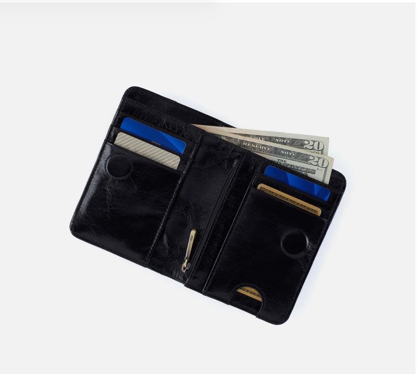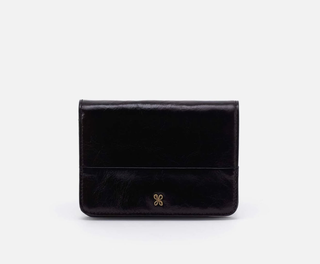 The HOBO Jill Bifold Wallet is a customer favorite for its slim profile and everyday functionality. Crafted in HOBO’s signature soft top-grain leather, this classic Black finish pairs with everything. Jill features a snap-closure design, multiple card slots, a bill pocket, and a secure zip pocket for coins. Sleek, timeless, and incredibly practical — it’s the perfect wallet for daily use.