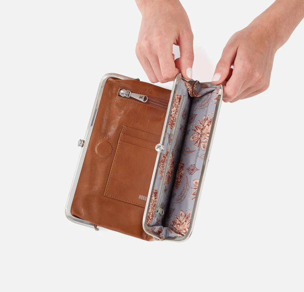 A HOBO classic, the Lauren Wallet in Truffle is the definition of timeless design. With its signature double frame and buttery vintage hide leather, this wallet easily transitions from day to night. It’s roomy enough to carry your essentials and elegant enough to be styled as a clutch.