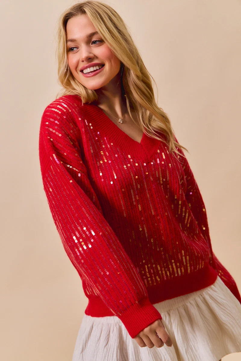 Add a little sparkle to your sweater lineup with the Sequin V-Neck Holiday Sweater. Featuring subtle clear sequins that catch the light with every move, this soft black knit blends cozy comfort with just-right glam. Dress it up for festive nights or pair it with denim for a casual-chic shimmer.
