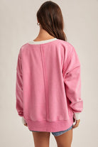 Stay comfy and effortlessly cool in the Snow Wash Oversized Sweatshirt. Designed with a relaxed fit and soft-washed finish, this sweatshirt features contrast trim, ribbed cuffs, and side slits for that laid-back, lived-in look. Perfect for pairing with denim or leggings all season long.