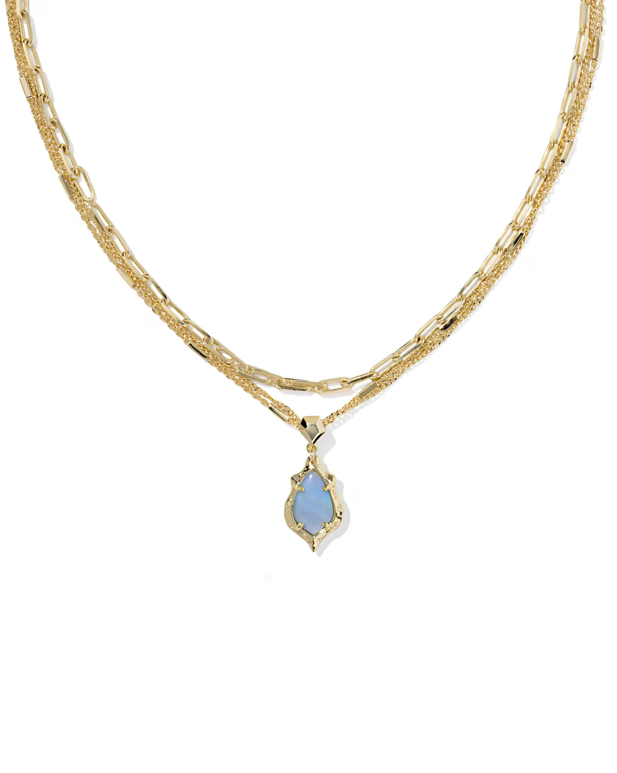 Kendra Scott Adriana Scallop Frame Gold Multi Strand Necklace in Sky Blue Iridescent Abalone