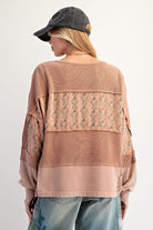 Soft, sweet, and perfectly lived-in — the Floral Patchwork Waffle Henley in Camel is the ultimate cozy-cute top. Designed with a mix of textured waffle knit, floral patchwork panels, and washed cotton contrast, this long sleeve henley brings effortless charm to your everyday style.