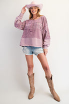 Soft, sweet, and perfectly lived-in — the Floral Patchwork Waffle Henley in Dusty Rose is the ultimate cozy-cute top. Designed with a mix of textured waffle knit, floral patchwork panels, and washed cotton contrast, this long sleeve henley brings effortless charm to your everyday style.