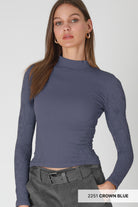 An elevated take on a layering essential. The Nikibiki Pointelle Top in Crown Blue features a sleek ribbed body with delicate pointelle detailing along the sleeves for a feminine, textured touch. The mock neckline adds a polished look while the seamless stretch fabric keeps it ultra-comfortable.