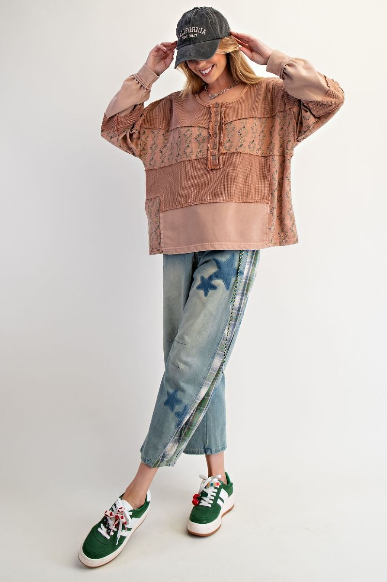 Nikibiki Textured Long Sleeve Top | Mocha Mousse
