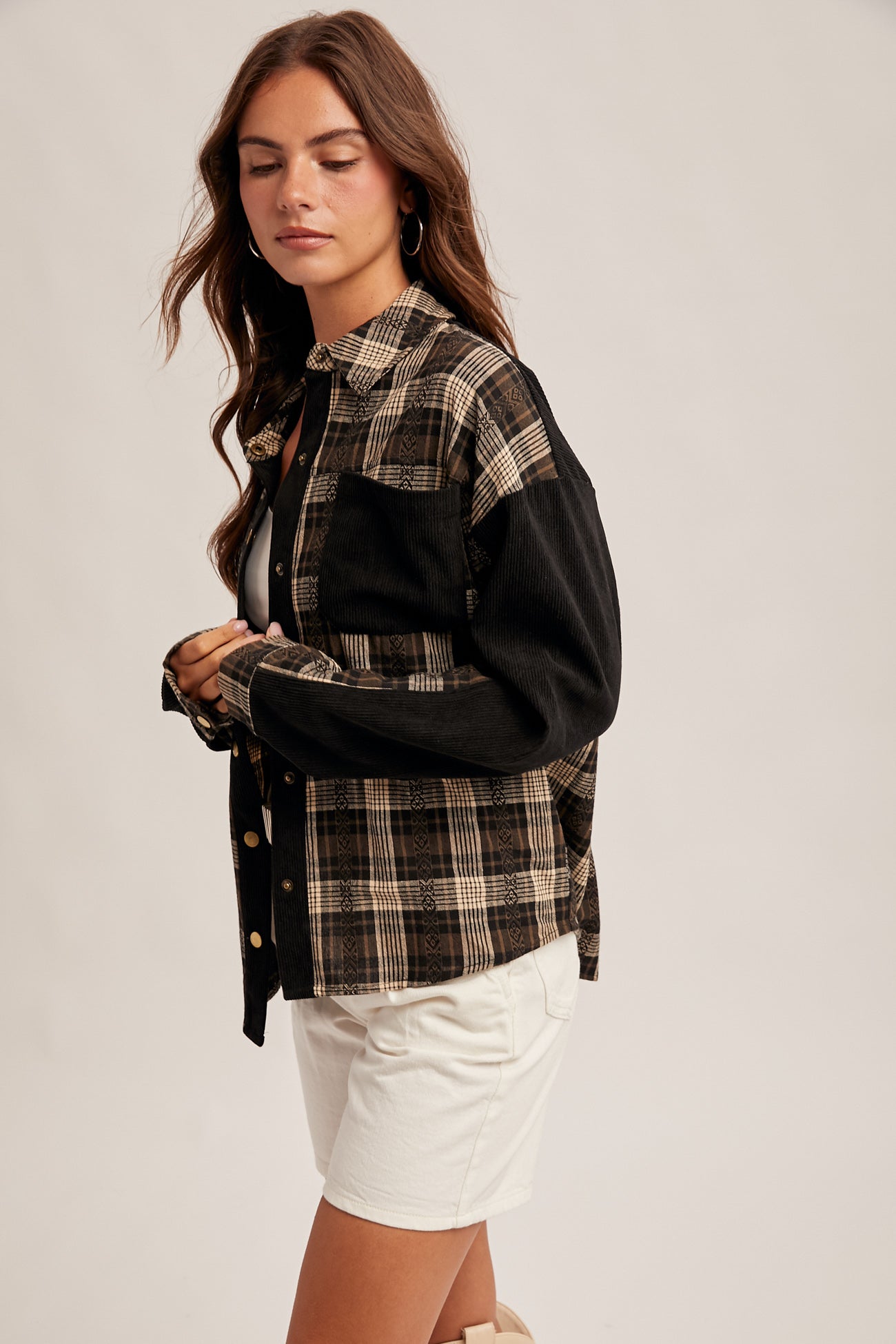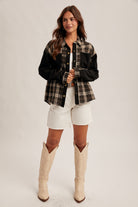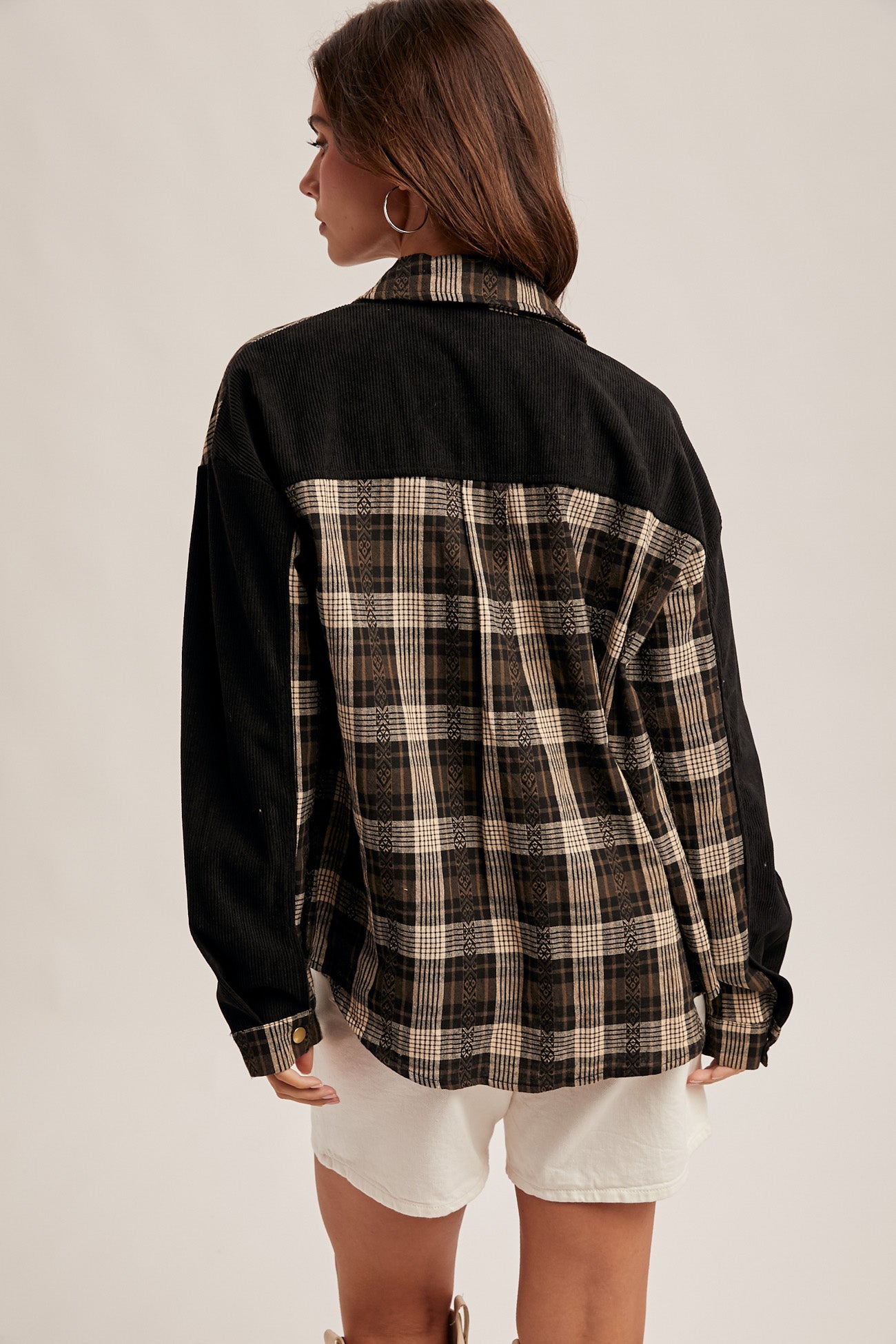 Black corduroy contrast with plaid body