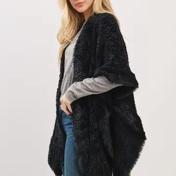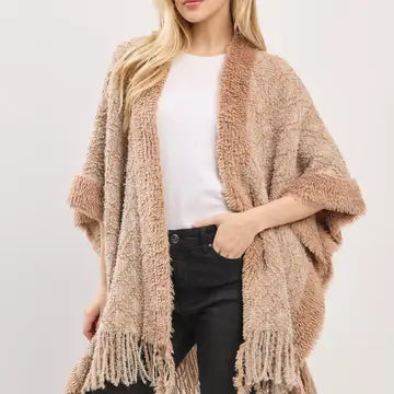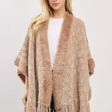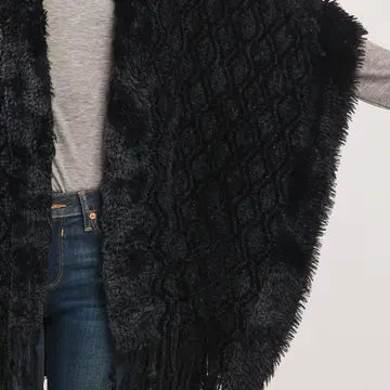 Wrap yourself in cozy charm with the Boucle Fringe Shawl.. Made from soft, textured bouclé knit (a looped fabric known for its plush feel), this shawl drapes beautifully and adds instant warmth and style to any outfit. The fringe trim brings a relaxed, chic touch — perfect for layering through fall and winter.