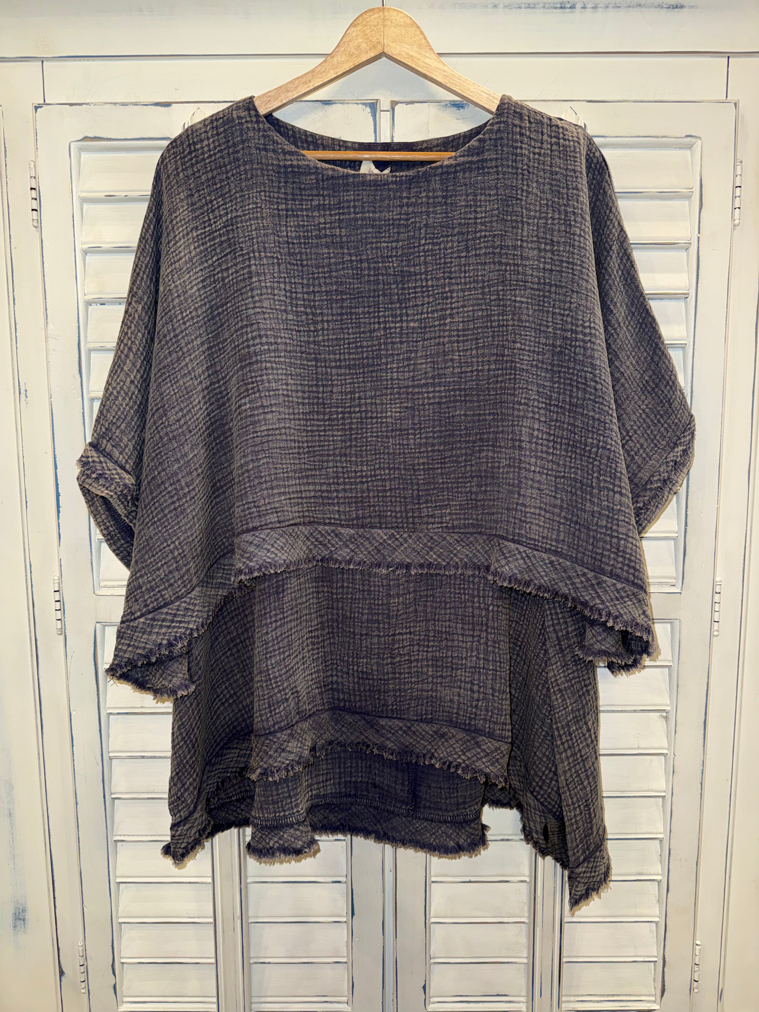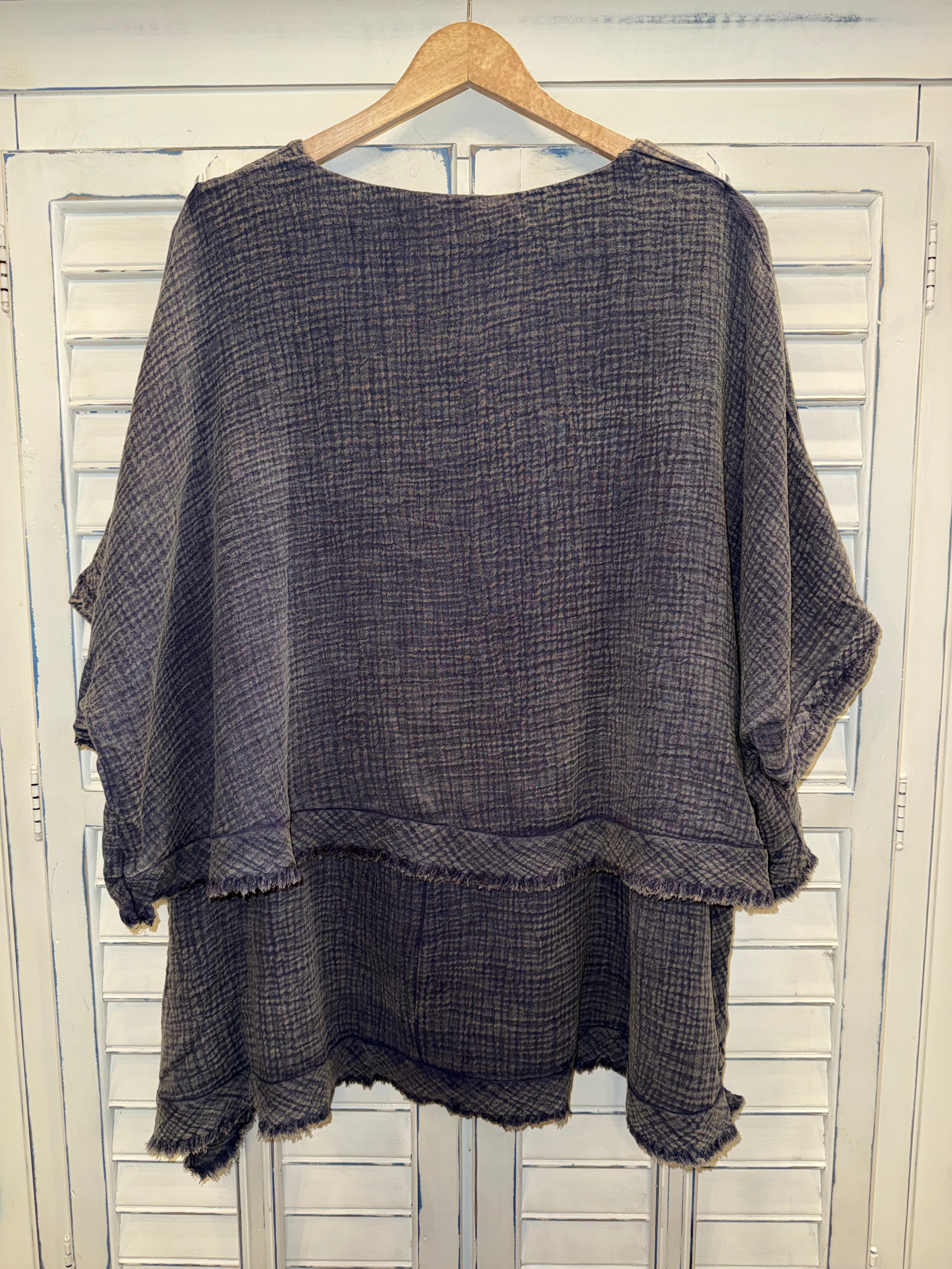 Mineral Wash Cotton Gauze Boxy Cut Two Layered Top