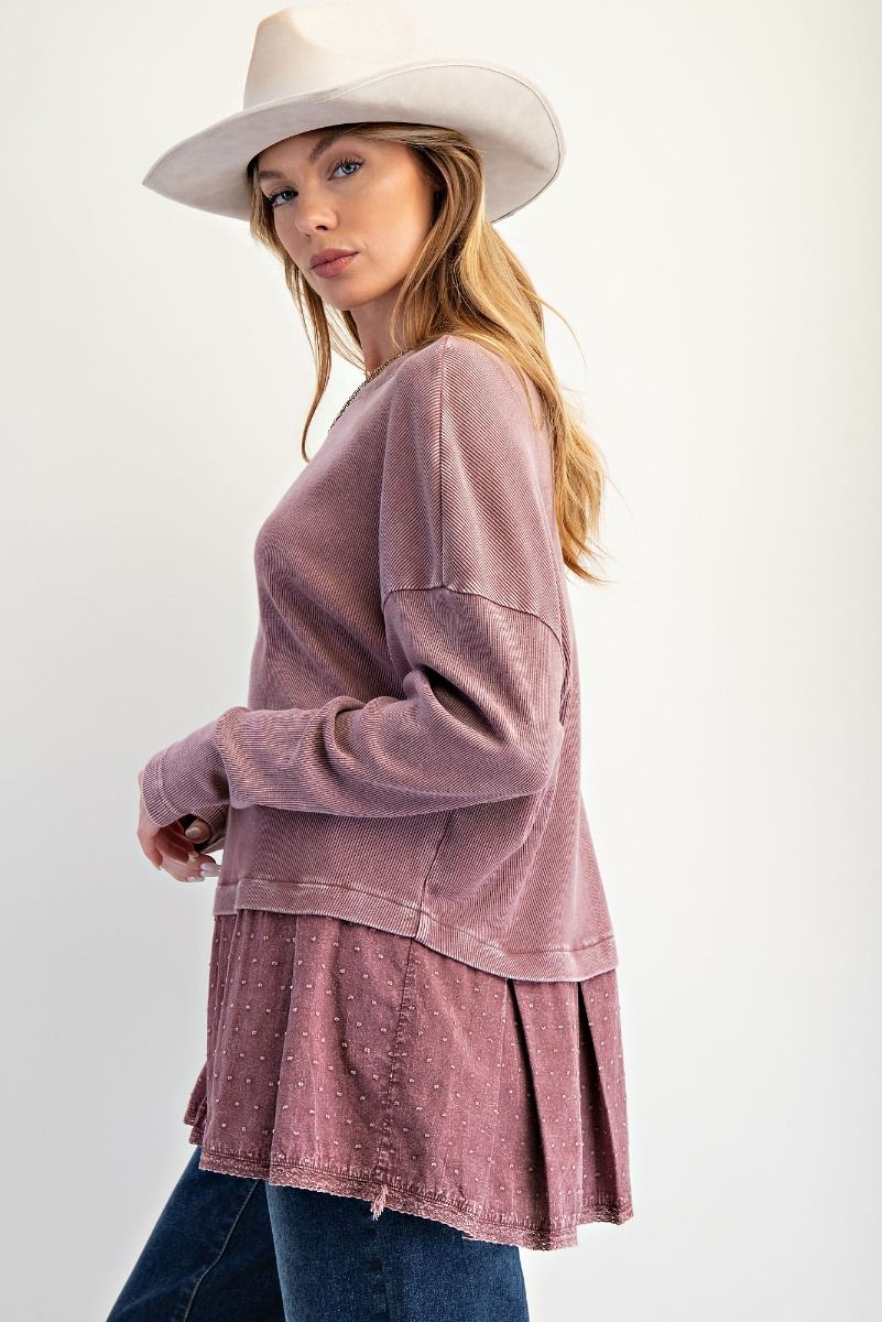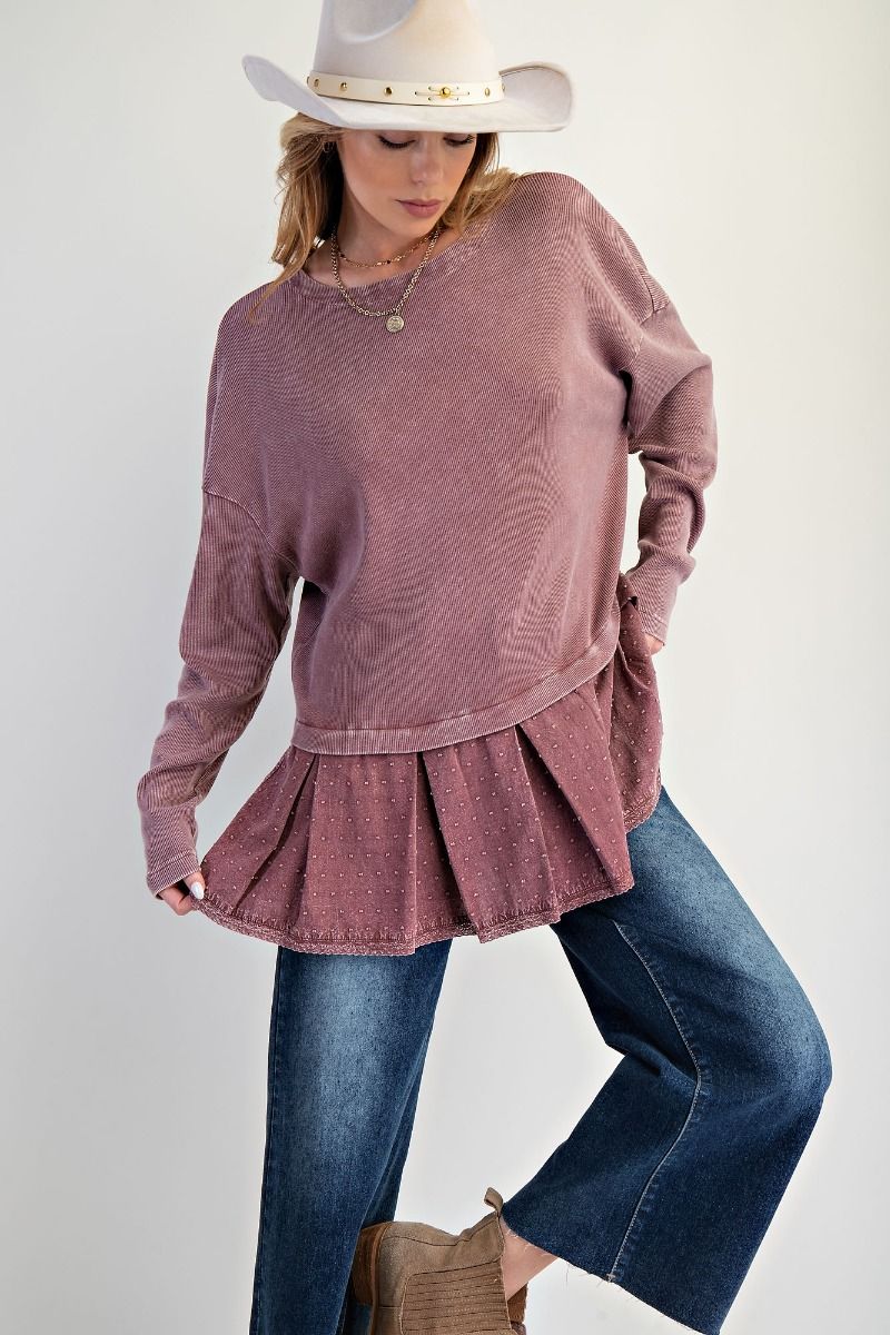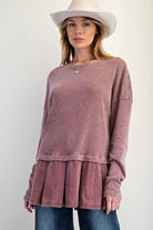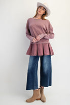 Keep it casual yet chic with our Ruffle Hem Washed Tunic in camel. Designed with a soft ribbed knit body and a pleated ruffle hem, this top adds the perfect touch of texture and movement. The relaxed fit makes it an easy go-to with jeans or leggings for everyday style.
