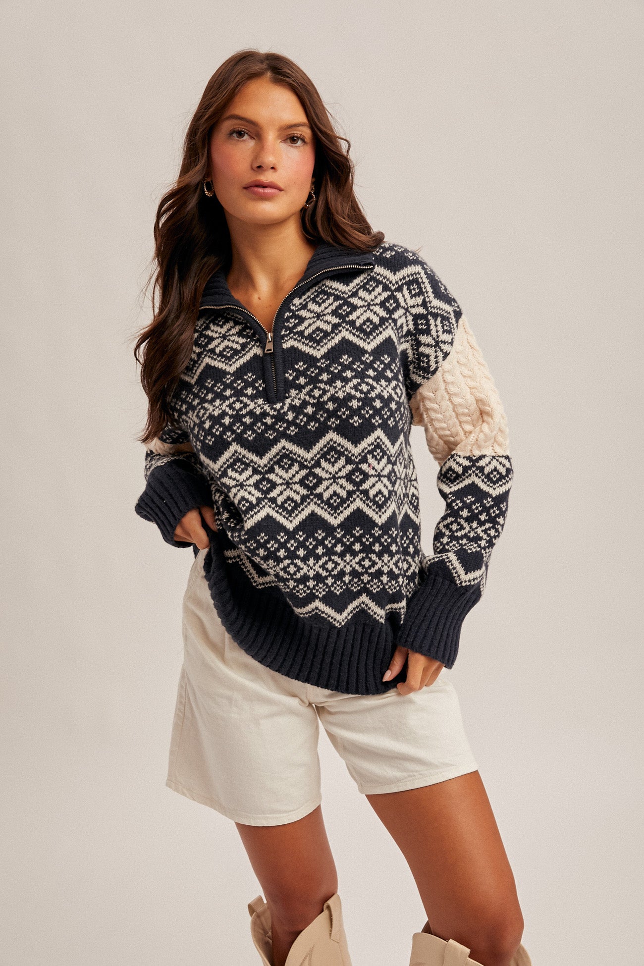 Nordic Mock Neck Knit Sweater
