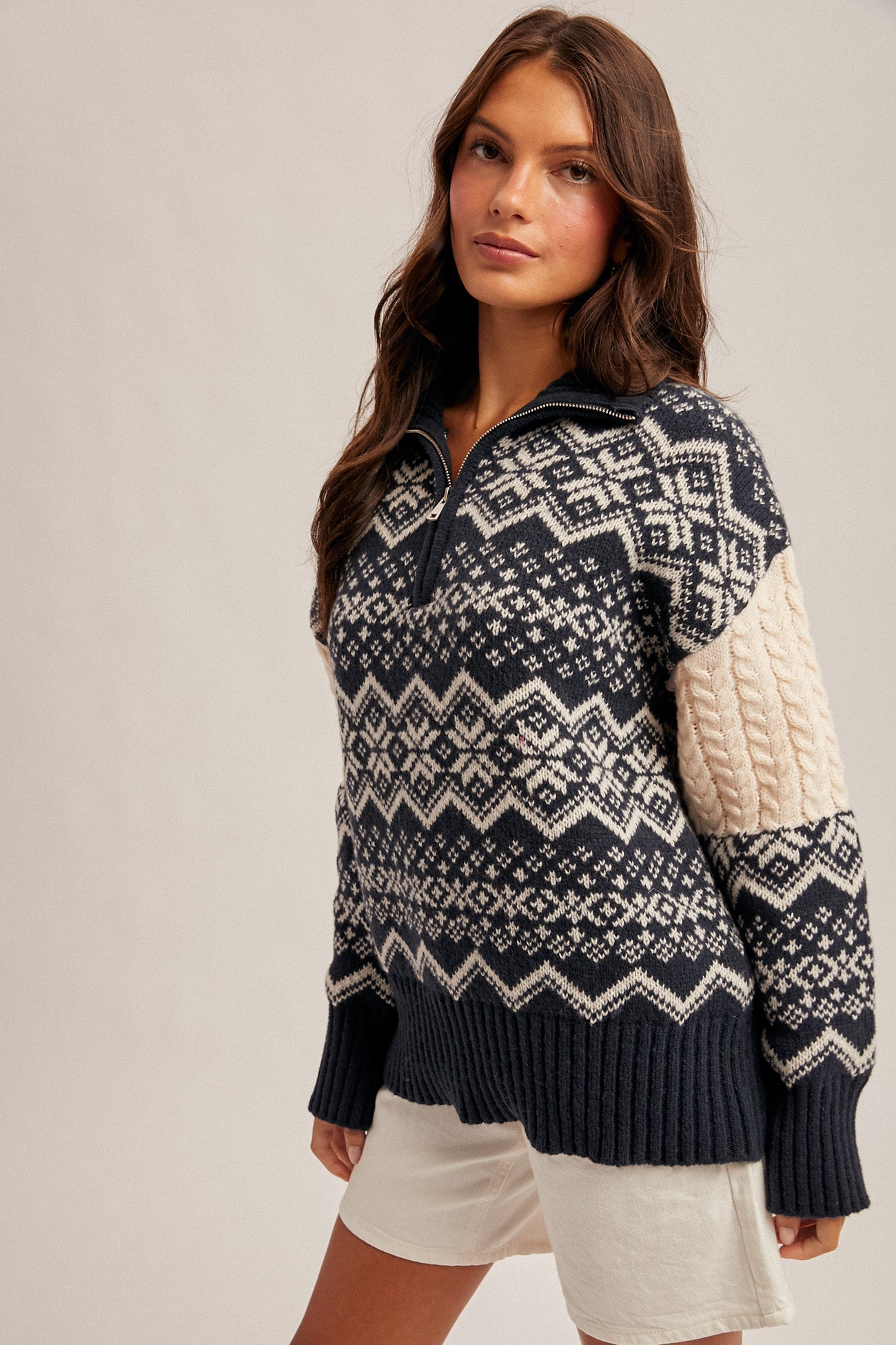 Navy Fair Isle Half Zip Sweater