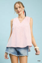 Mixed Stripe Sleeveless V-Neck Top- Pink