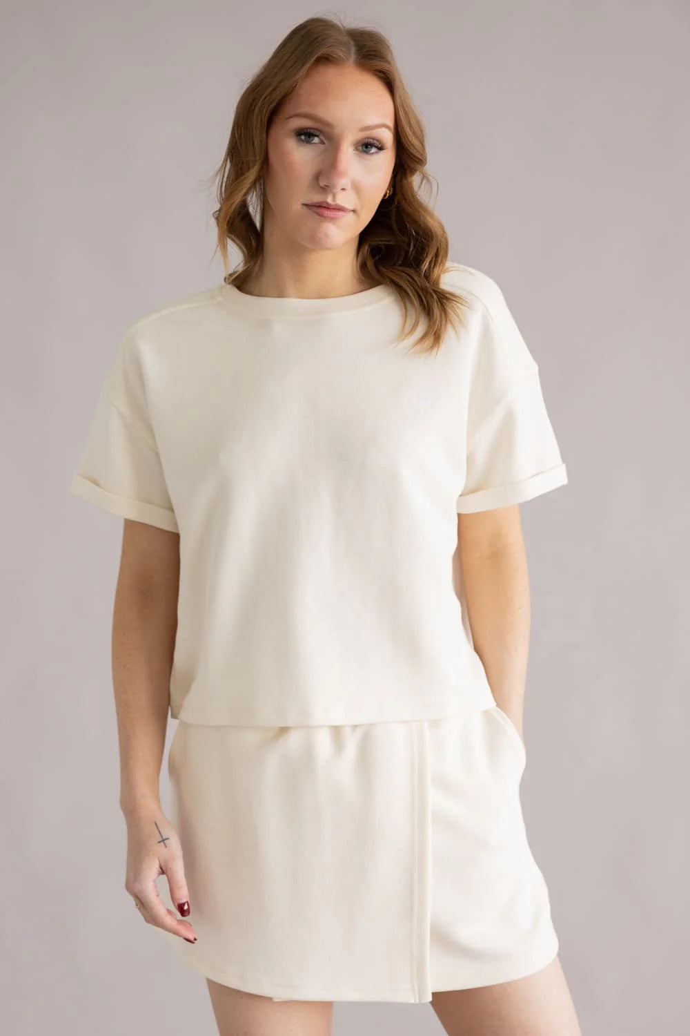 The Simply Southern Lounge Crop Tee features a relaxed fit with soft, lightweight knit fabric and an easy cropped length. Designed to pair perfectly with the matching lounge wrap skort, this top makes getting dressed effortless.