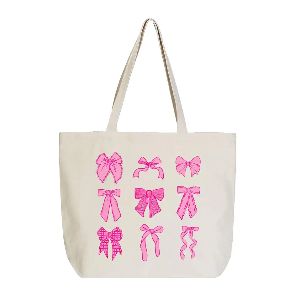 Pink Bow Print Canvas Tote Bag