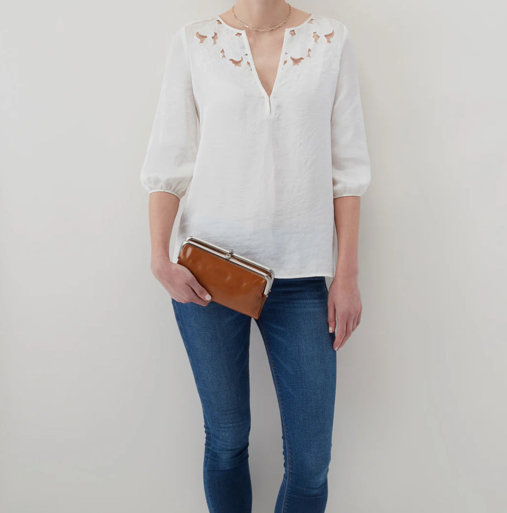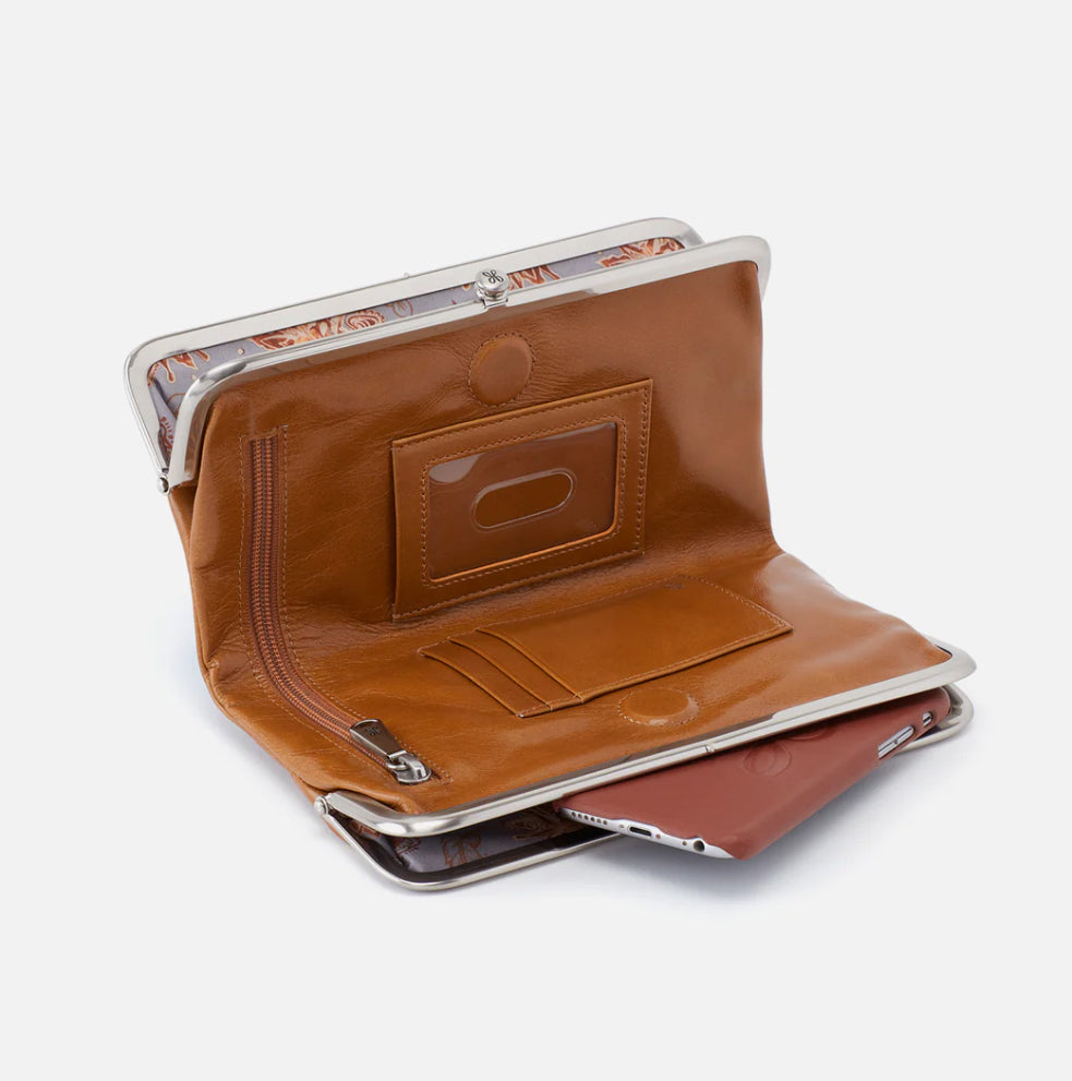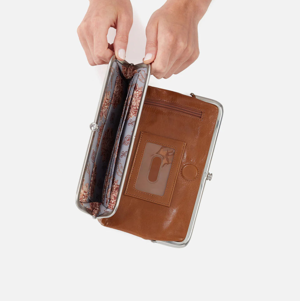 A HOBO classic, the Lauren Wallet in Truffle is the definition of timeless design. With its signature double frame and buttery vintage hide leather, this wallet easily transitions from day to night. It’s roomy enough to carry your essentials and elegant enough to be styled as a clutch.